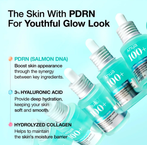 Unlock deeply hydrated, plump, and radiant skin with this highly concentrated serum from Anua. Featuring 100 ppm PDRN from salmon DNA to boost skin repair and elasticity, a powerful 11-layer hyaluronic acid complex for intense moisture, and hydrolyzed collagen to enhance firmness and suppleness.