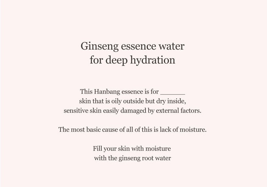 Panax Ginseng Root Water, Butylene Glycol, Glycerin, Propanediol, Niacinamide, 1,2-Hexanediol, Water, Hydroxyacetophenone, Glyceryl Glucoside, Xanthan Gum, Panthenol, Dipotassium Glycyrrhizate, Allantoin, Adenosine, Panax Ginseng Callus Culture Extract, Theobroma Cacao (Cocoa) Extract, Dextrin, Glucose, Panax Ginseng Root Extract, Panax Ginseng Berry Extract, Lactobacillus/Panax Ginseng Root Ferment Filtrate, Sodium Hyaluronate, Ethylhexylglycerin, Disodium EDTA