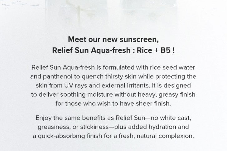 If you're looking for a more moisturizing sunscreen from this brand, try the original version ''relief sun: rice + probiotics''.