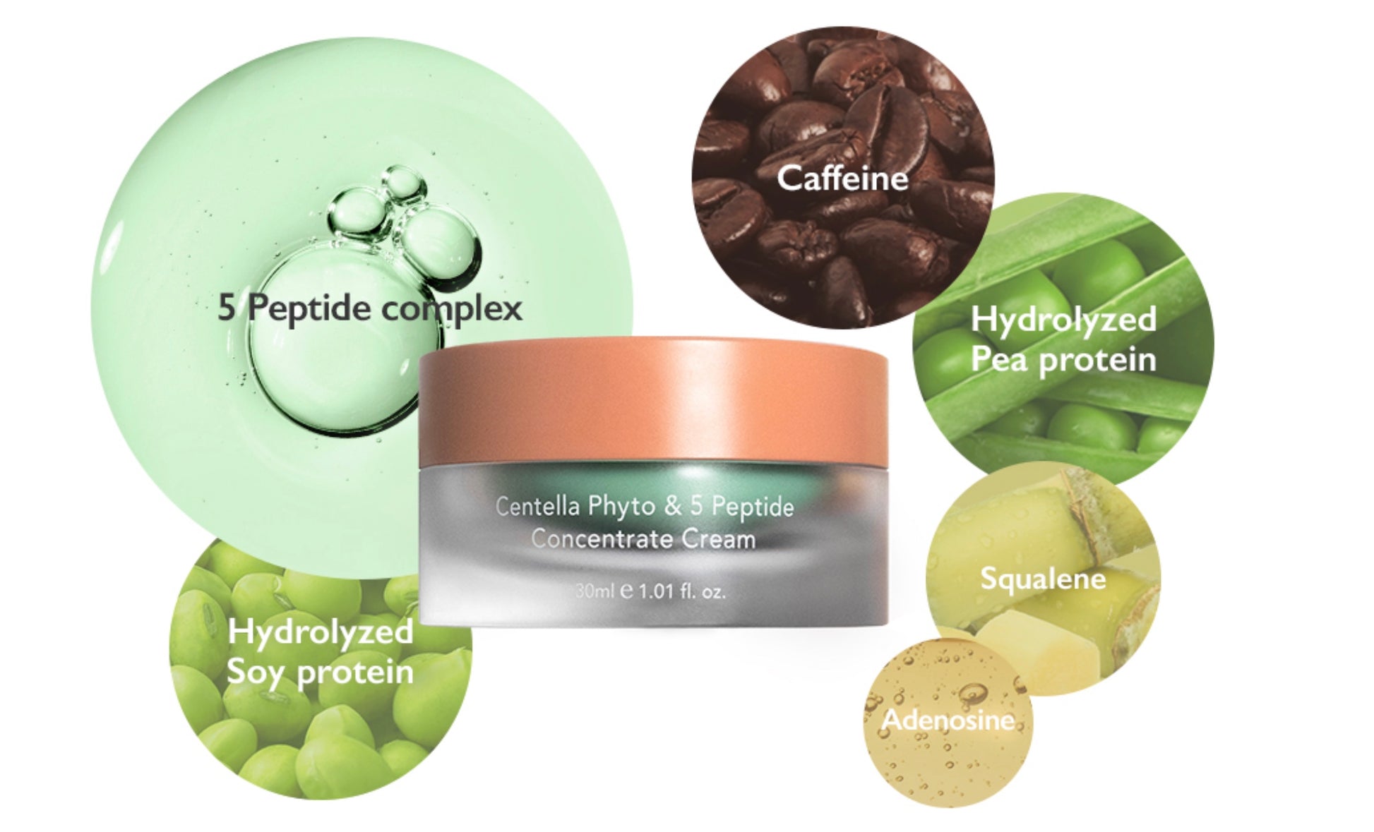 Water, Glycerin, Butylene Glycol, Caprylic/Capric Triglyceride, Helianthus Annuus Seed Oil, Polyglyceryl-3 Distearate, 1,2-Hexanediol, Cetyl Alcohol, Cetyl Palmitate, Ammonium Acryloyldimethyltaurate/VP Copolymer, Sorbitan Palmitate, Sorbitan Olivate, Glyceryl Stearate, Stearyl Alcohol, Xanthan Gum, Glyceryl Stearate Citrate, Myristyl Alcohol, Squalane, Caffeine, Hydrolyzed Soy Protein, Hydrogenated Lecithin, Pentylene Glycol, Ethylhexylglycerin, Adenosine, Butyrospermum Parkii Butter, Phytosterols, Lauryl Alcohol, Centella Asiatica Extract, Hydrolyzed Pea Protein, Madecassoside, Asiaticoside, Caprylyl Glycol, Xylitylglucoside, Anhydroxylitol, Copper Tripeptide-1, Xylitol, Acetyl Hexapeptide-8, Asiatic Acid, Madecassic Acid, Glucose, Ceramide, Hippophae Rhamnoides Fruit Extract, Oligopeptide-32, Oligopeptide-29, Palmitoyl Pentapeptide-4