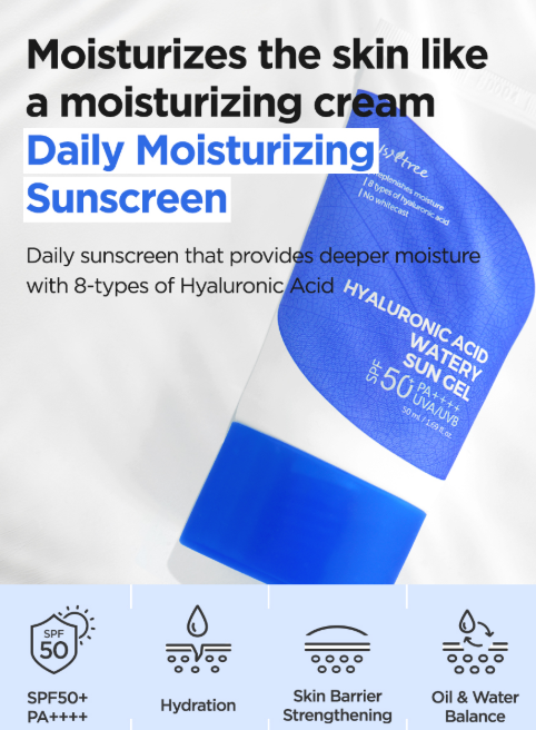 This lightweight sunscreen is designed to absorb quickly without leaving any white cast, stickiness, or heavy residue. The Watery Sun Gel provides intense hydration with eight types of hyaluronic acid that help lock in moisture and plump your skin.