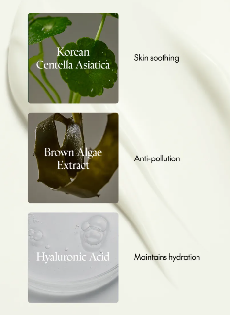 Infused with over 30,000 ppm of Centella Asiatica Extract, it effectively soothes inflammation, while a robust hyaluronic acid complex deeply hydrates your skin. Brown algae extract boosts defense from pollution, creating a lightweight, dewy finish that leaves no white cast.