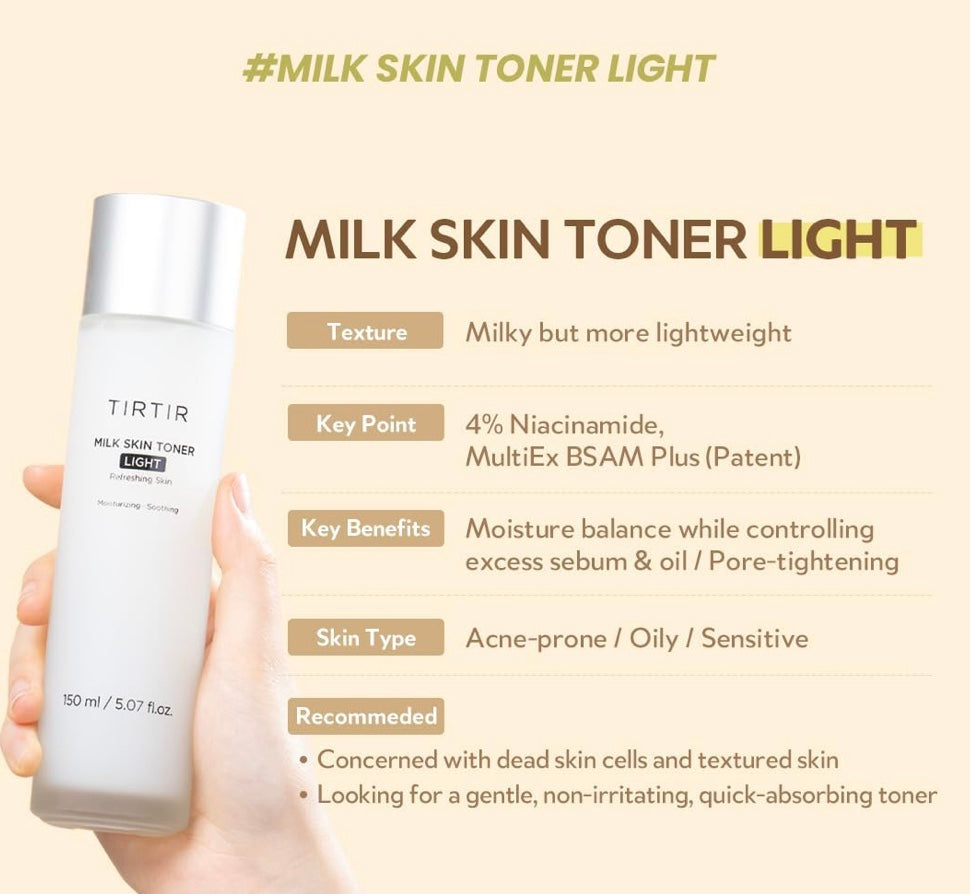 If your skin needs more moisture, or is very dry, try the regular version from Tirtir, the ''milk skin toner''. That version is a bit more moisturizing and has more viscosity.